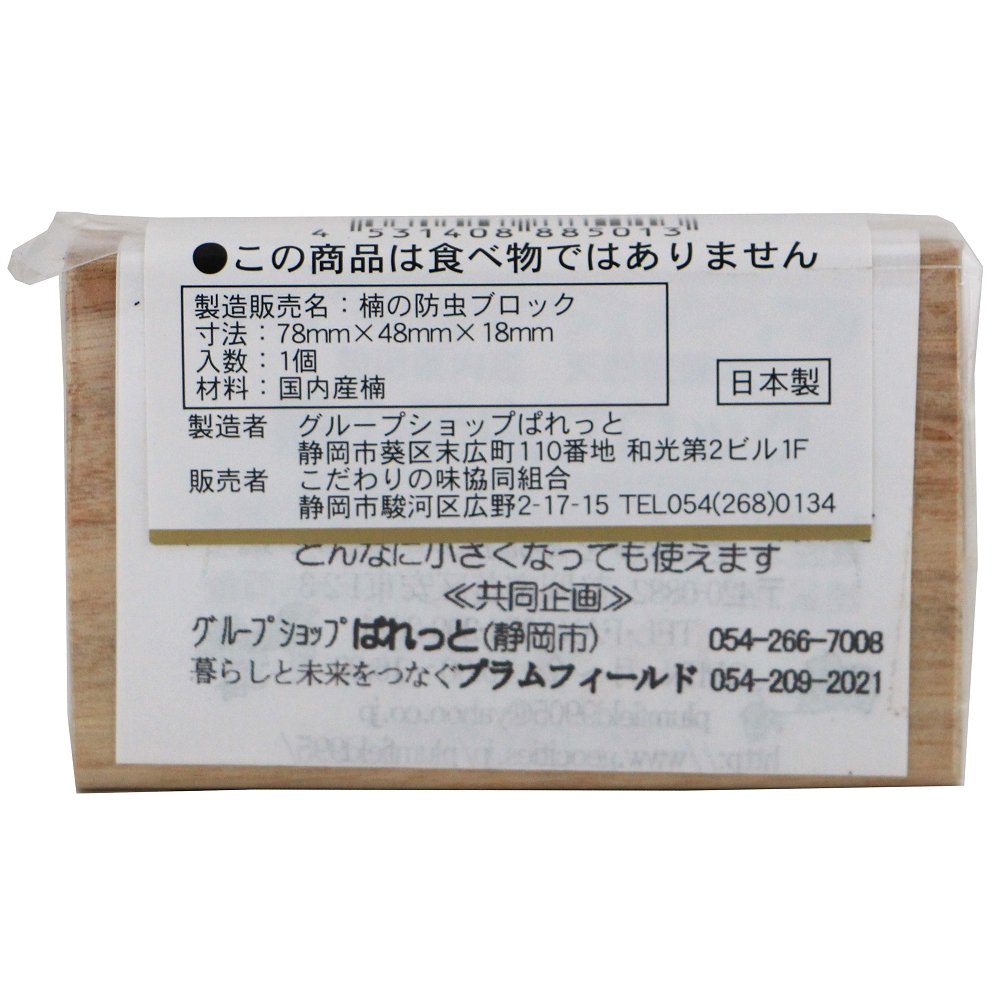 ・廃材となる家具の端材の国産楠を原料にしています。 ・楠の香りは神経を休める効果があり、市販の防虫剤のような毒性はありません。 ・香りがなくなりましたらサンドペーパーで軽く削っていただければ、最後なくなるまで防虫効果があります。 ・衣裳ケースに2~3個が目安です。市販の防虫剤は人にも神経毒のある化学物質です。楠の防虫作用は虫が嫌いな臭いで虫を寄せ付けないようにします。