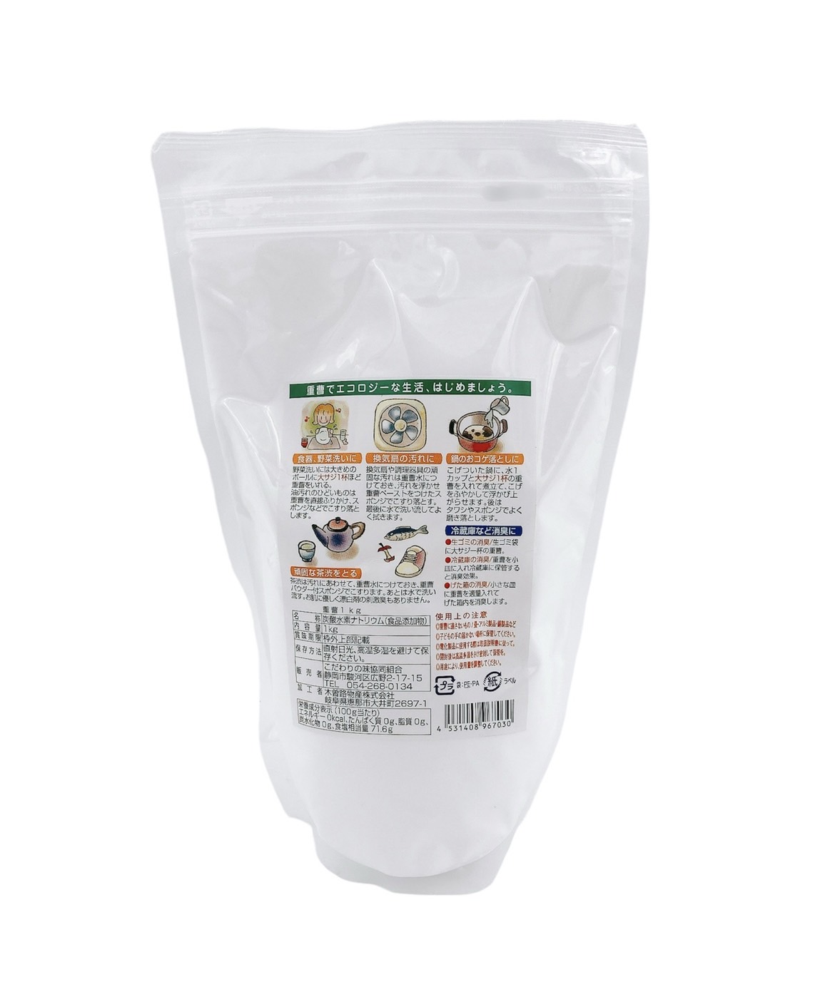 中国内モンゴル産のトロナ鉱石から採り出した天然重曹です。漬物や野菜のアク抜き、蒸しパン、煮物等の食品利用は勿論、家庭内の掃除、洗濯、洗浄、冷蔵庫やペットの床の脱臭、愛車の洗車にも使えます。天然物ですから地球にやさしい重曹です。