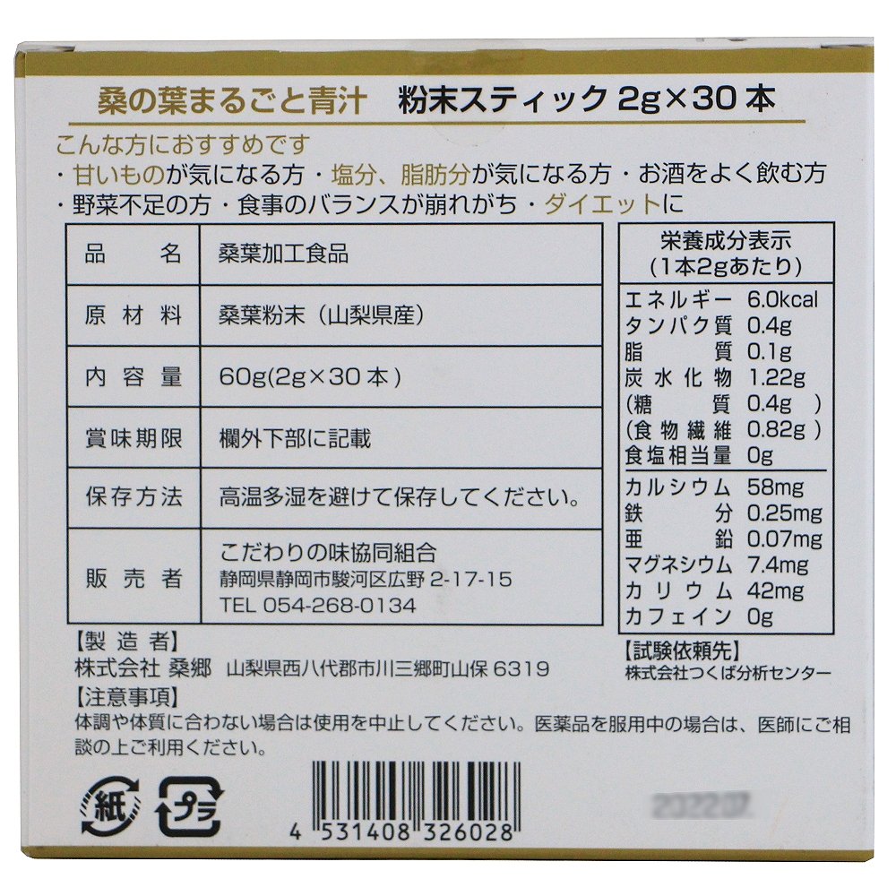 | 原材料 | 桑葉粉末(山梨県産) |
