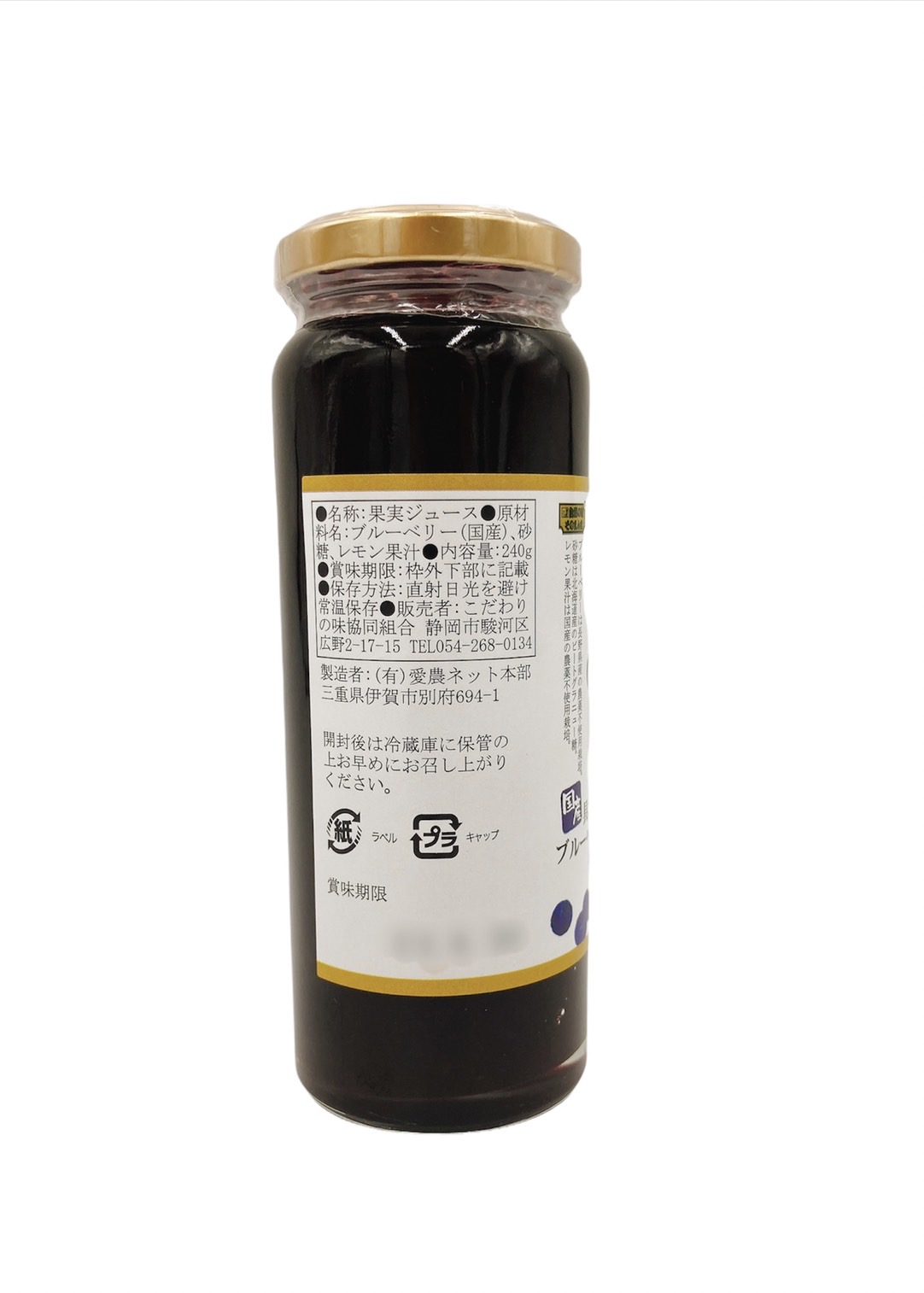 | 原材料 | ブルーベリー(国産)、ビートグラニュー糖、レモン果汁 |