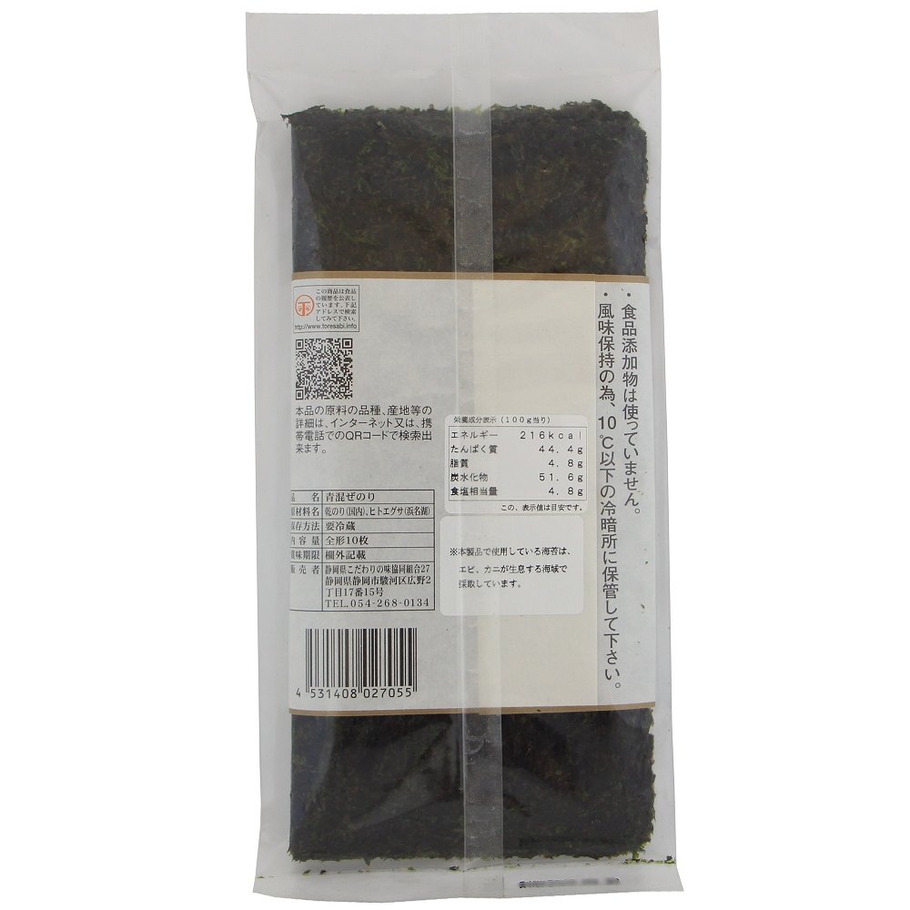 | 原材料 | ひとえぐさ50%(浜名湖産)、ほしのり50%(愛知県産) |