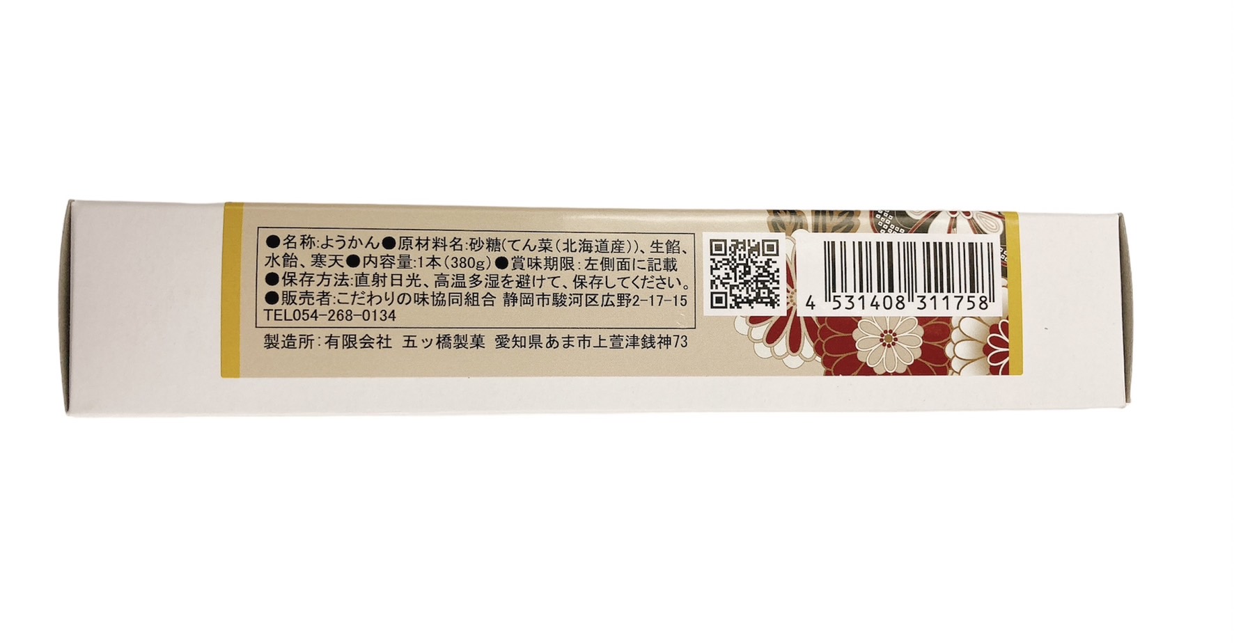 | 原材料 | 砂糖(北海道産ビートグラニュー糖)、生餡(北海道産特別栽培小豆)、水飴(国産さつま芋)、寒天(国産天草) |