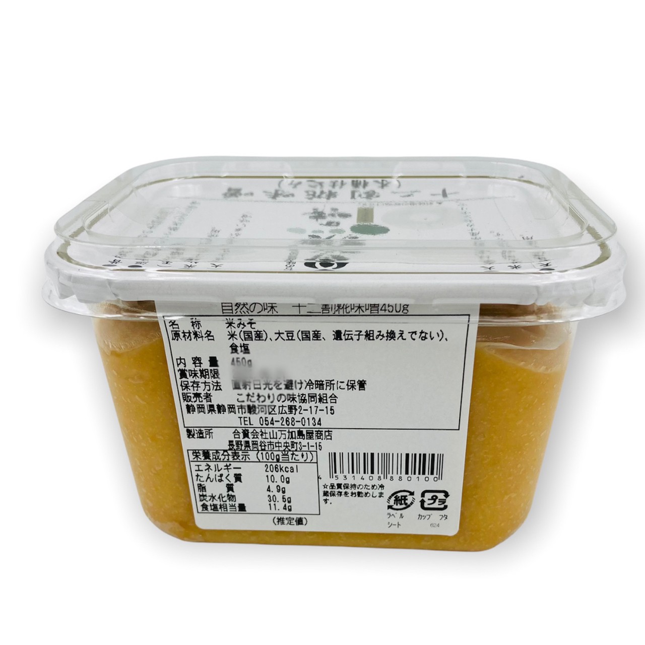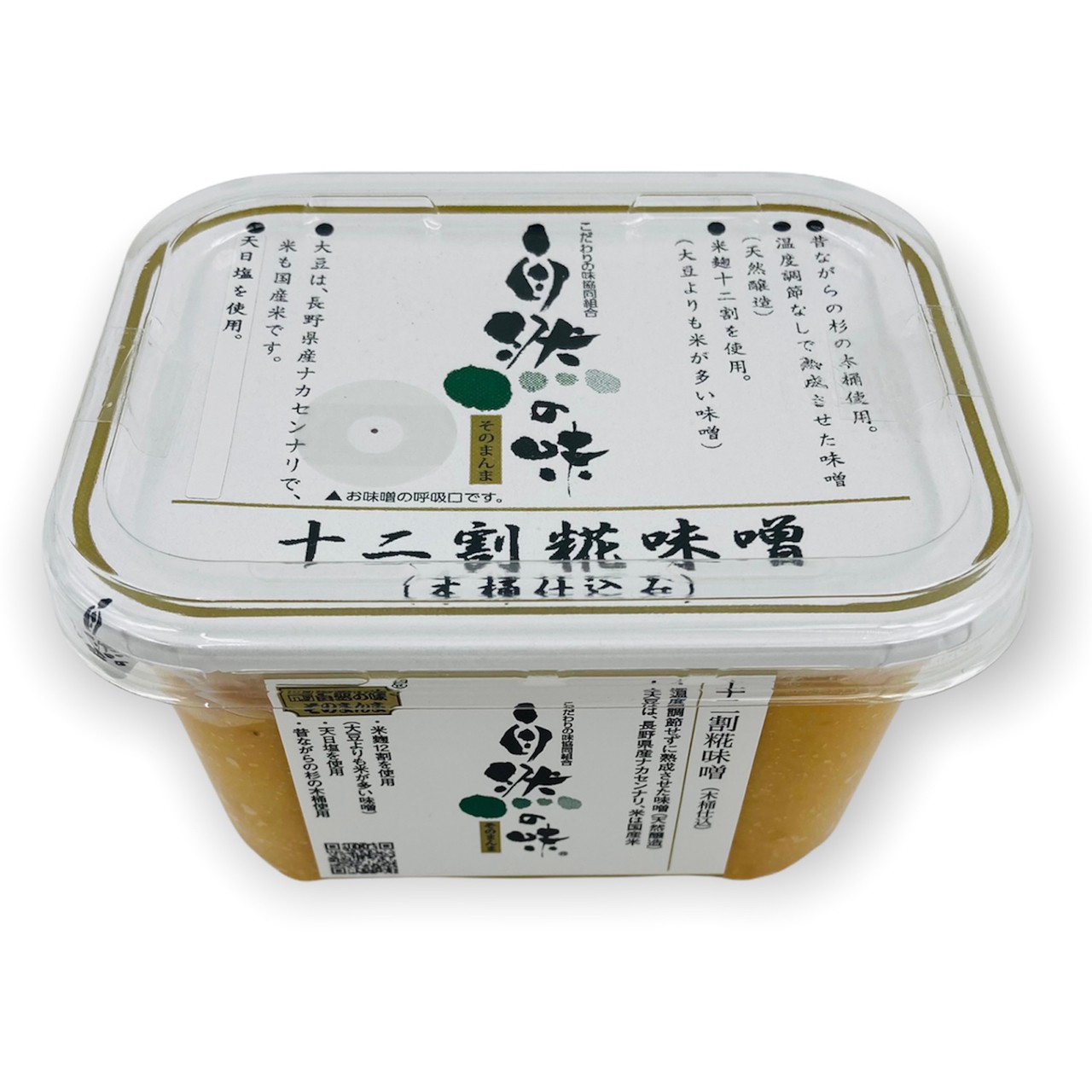 信州でとれたナカセンナリという品種で上質な豆腐でも使われるうま味が多い大豆を使用し、50年の職人が丹精込めて作り上げた米麹を贅沢に12割使い、まるで麹室にいるような甘いかおりのする味噌です。