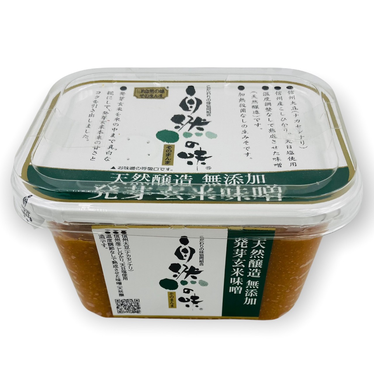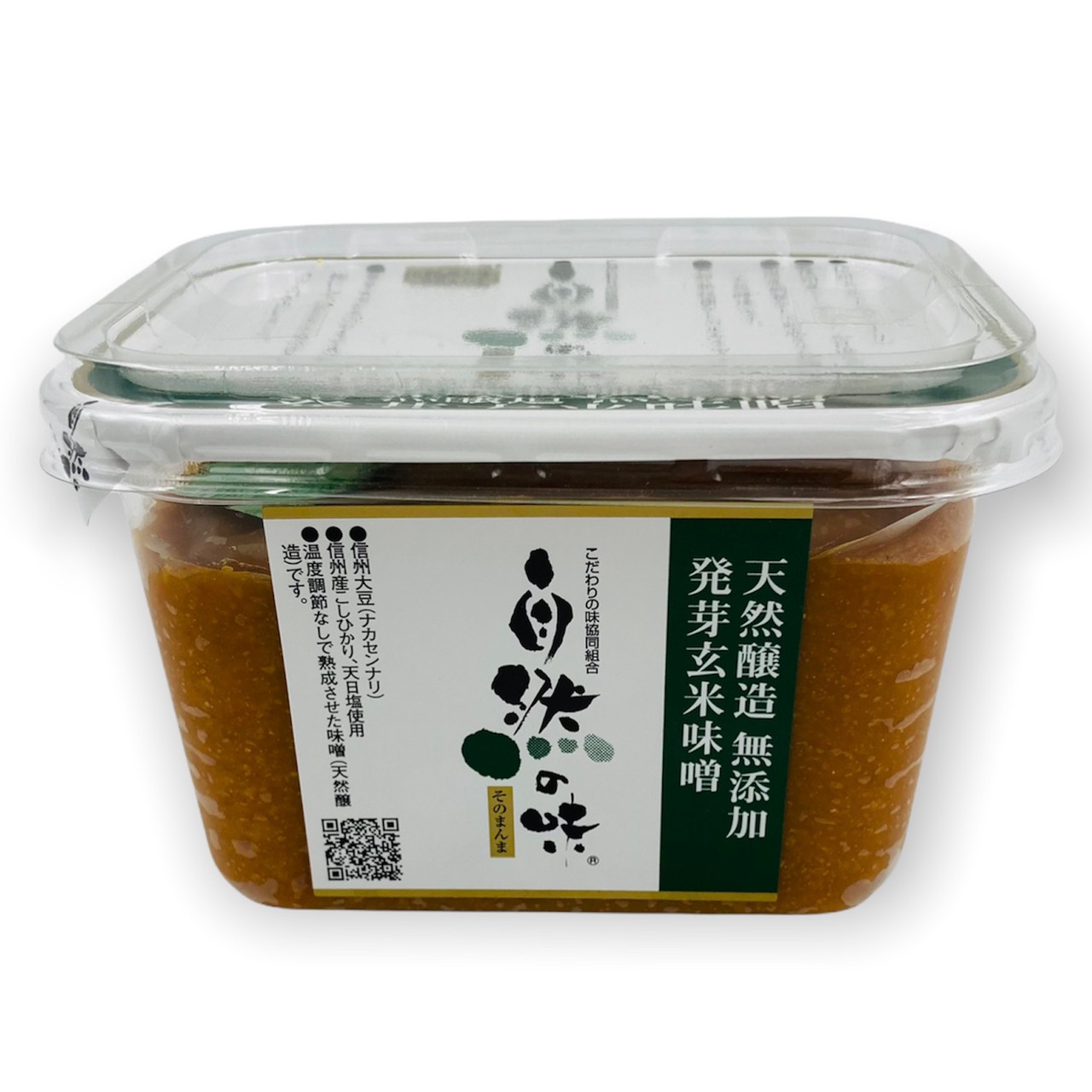 温度調節、加熱殺菌なしの天然醸造味噌です。国内産の米、大豆を使用し、発芽玄米を見事に糀にして、玄米の甘さとコクを引き出しました。(熟成期間8~10か月)