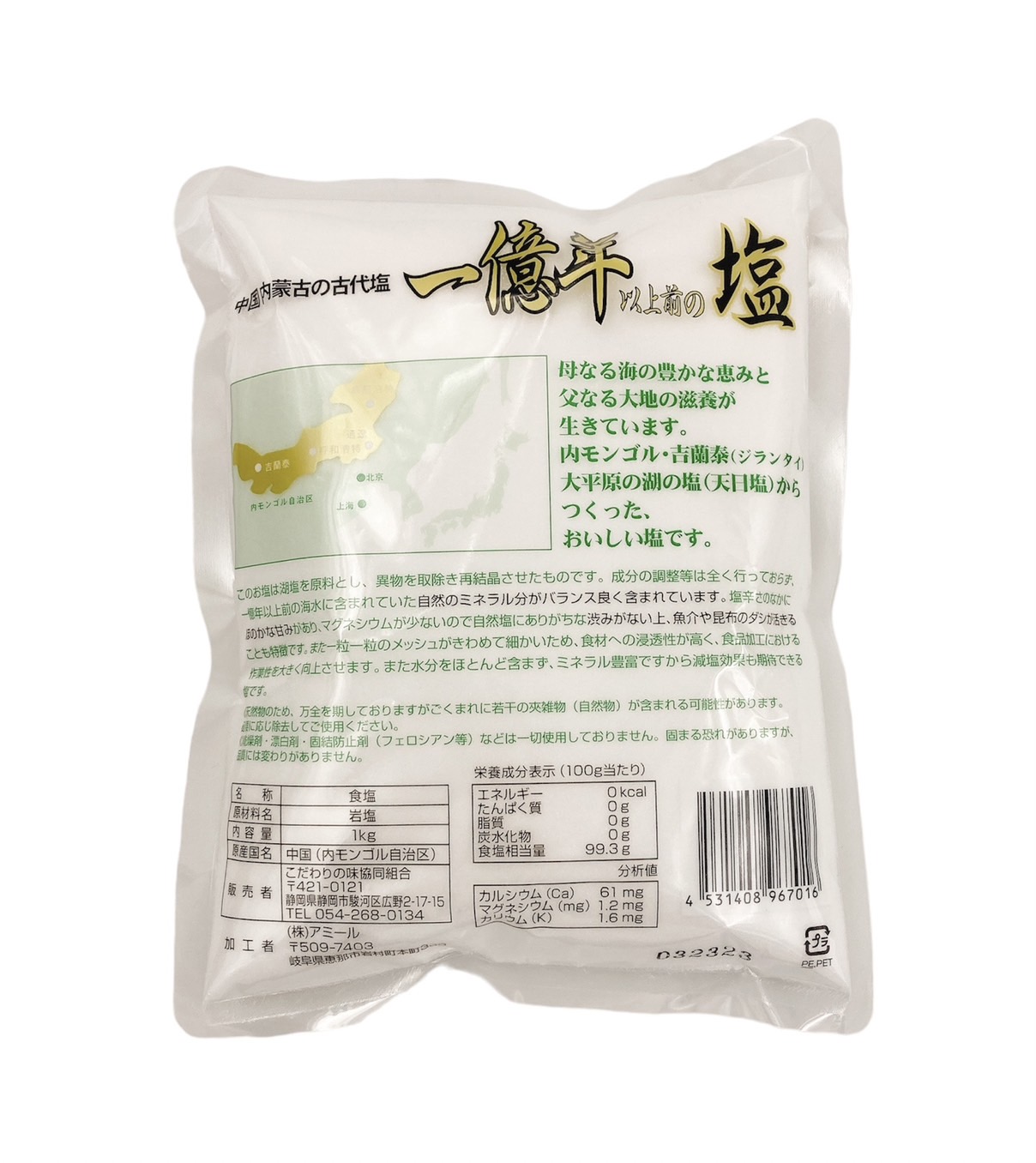 | 原材料 | 岩塩(中国内モンゴル産) |