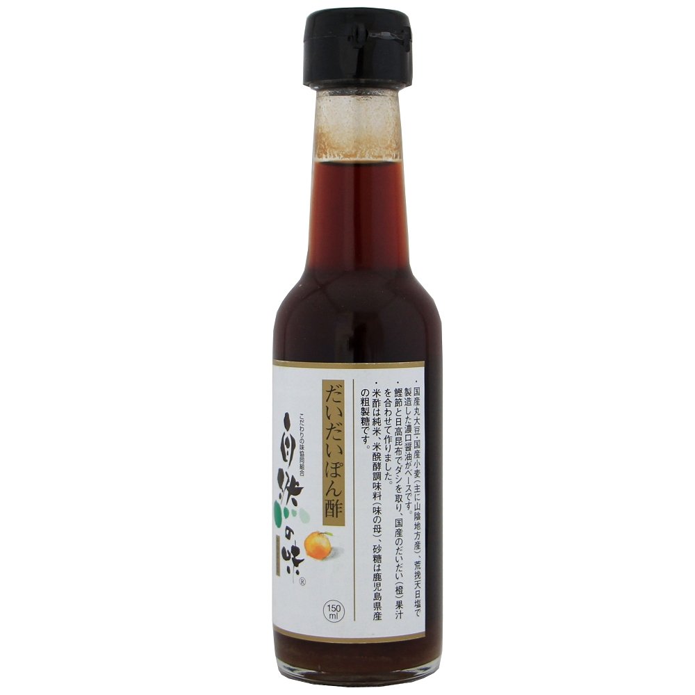 | 原材料 | 醤油(大豆(国産))、小麦(国産)、食塩)、だいだい果汁(山口県)、米醗酵調味料(米、米麹、食塩)(国産)、米酢(国産)、かつお削り節(鹿児島県)、昆布(北海道・日高産) |