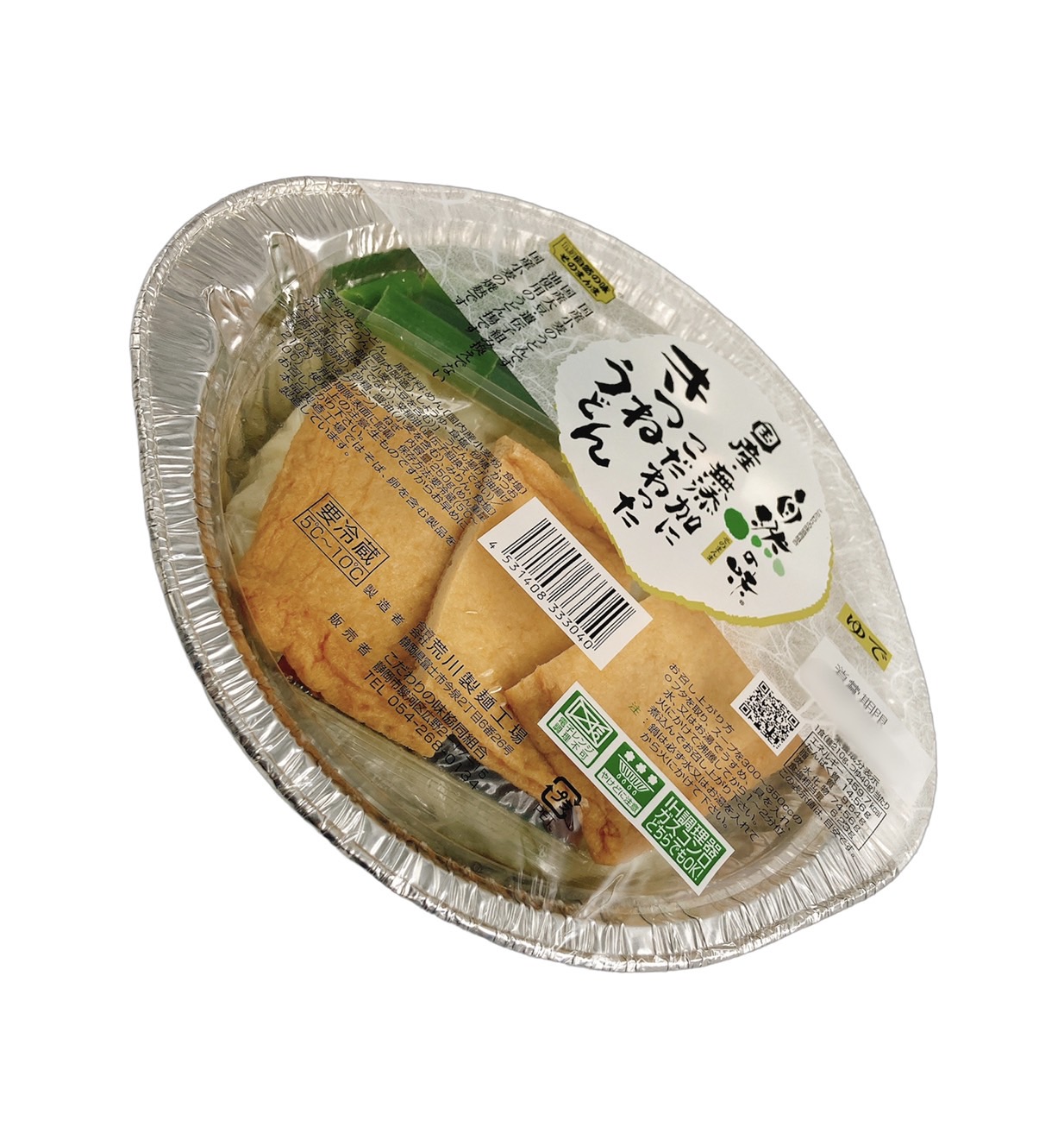 | 原材料 | めん[国内産小麦粉・食塩] スープ[みりん(国内製造)、醤油、食塩、砂糖、かつおぶしエキス(一部に小麦・大豆を含む)] うどん揚げ[油揚げ(大豆(遺伝子組み換えでない)、菜種油(遺伝子組み換えでない)/豆腐用凝固剤)、砂糖、醤油(小麦を含み)、みりん、食塩] 麩[小麦粉、小麦グルテン]ねぎ |