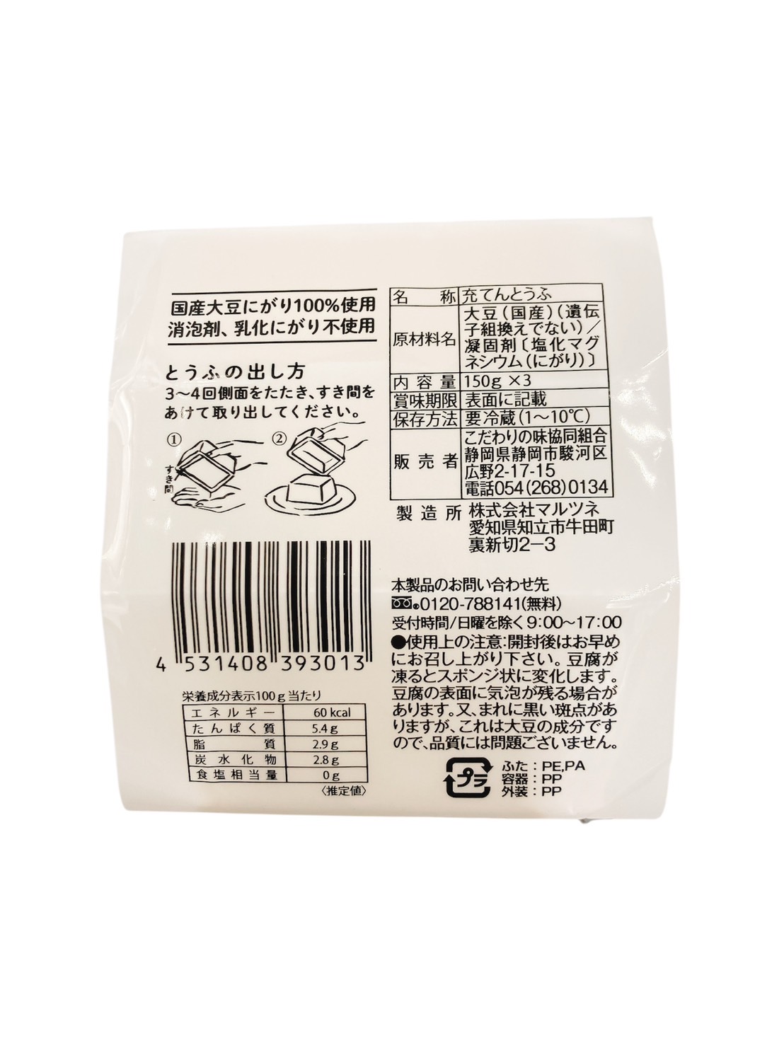 | 原材料 | 大豆(国産)(分別生産流通管理済み)/凝固剤(塩化マグネシウム[にがり]) |