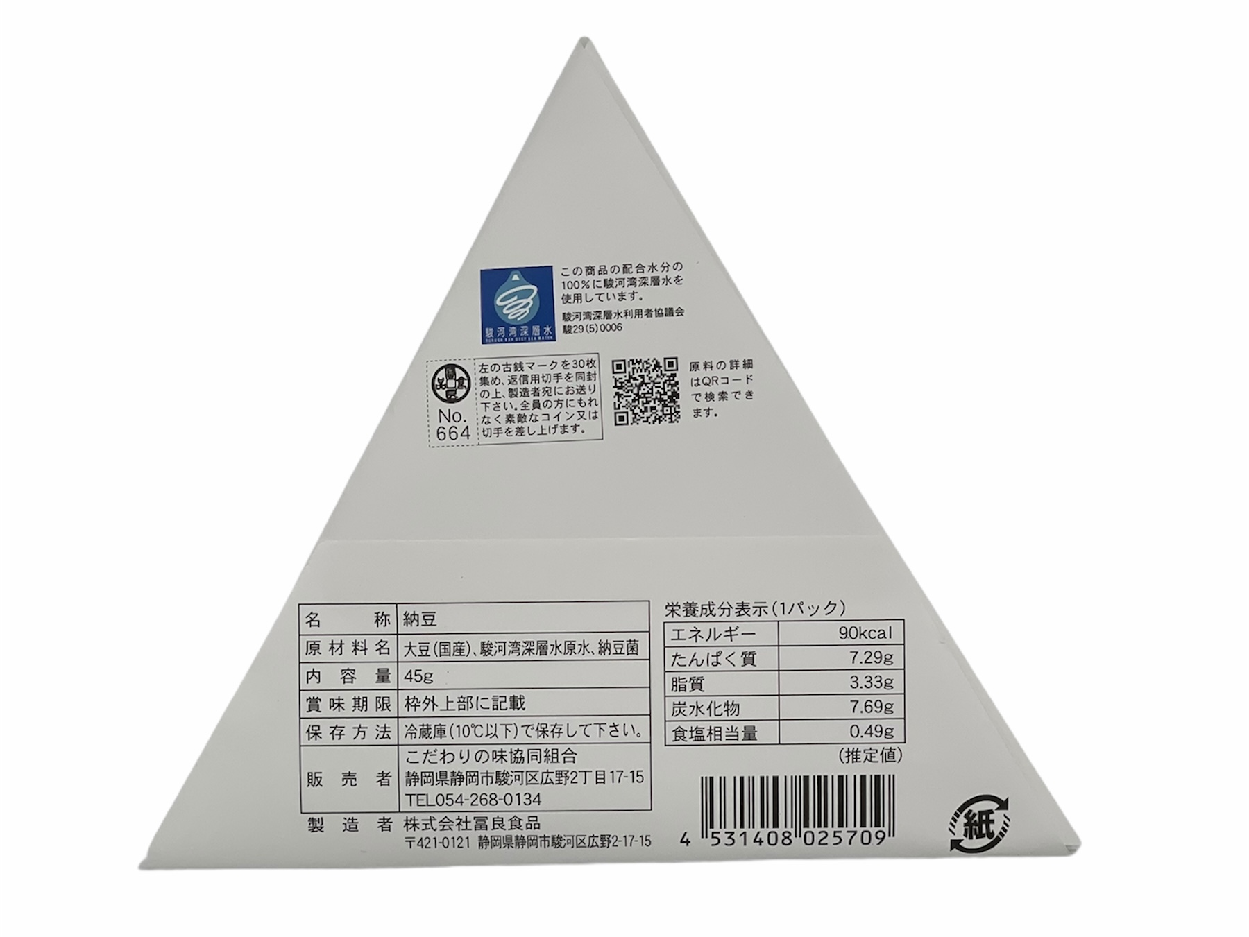| 原材料 | 大豆(静岡県産フクユタカ)、納豆菌、駿河湾産深層水 |