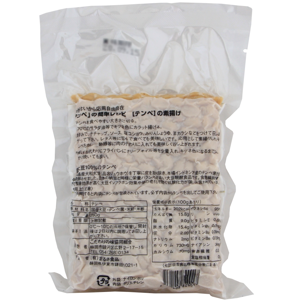 | 原材料 | 丸大豆(秋田リュウホウ大粒大豆)、テンペ菌、(製造工程の一部で米粉・米酢を使用) |