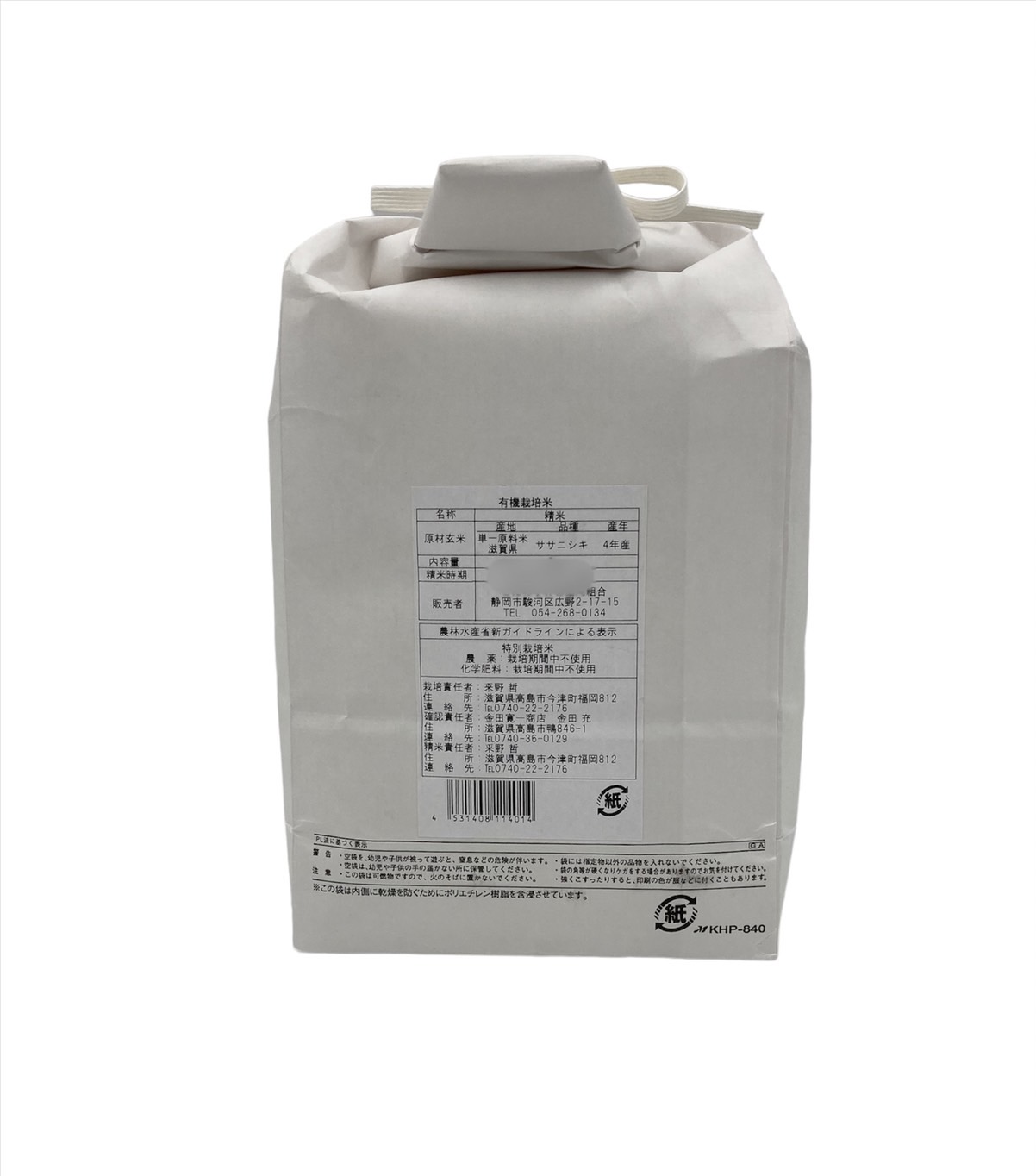 滋賀県産 有機栽培ササニシキ(白米)※休売