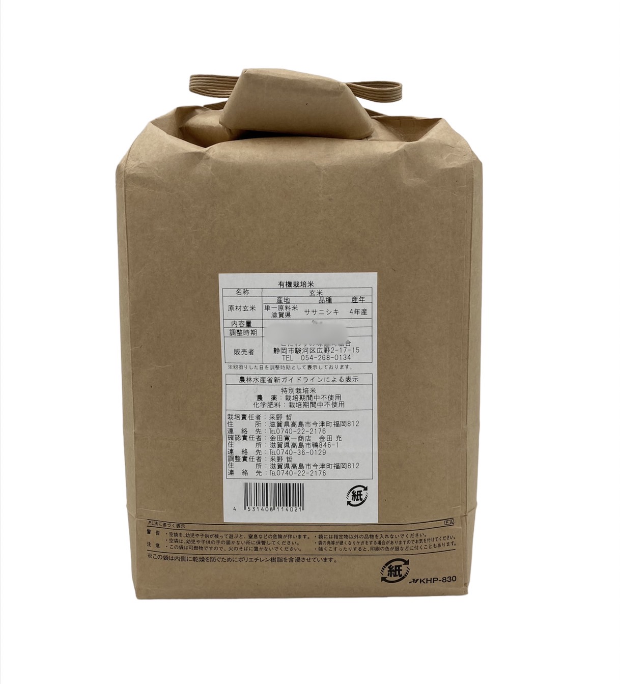 滋賀県産 有機栽培ササニシキ(玄米)※休売