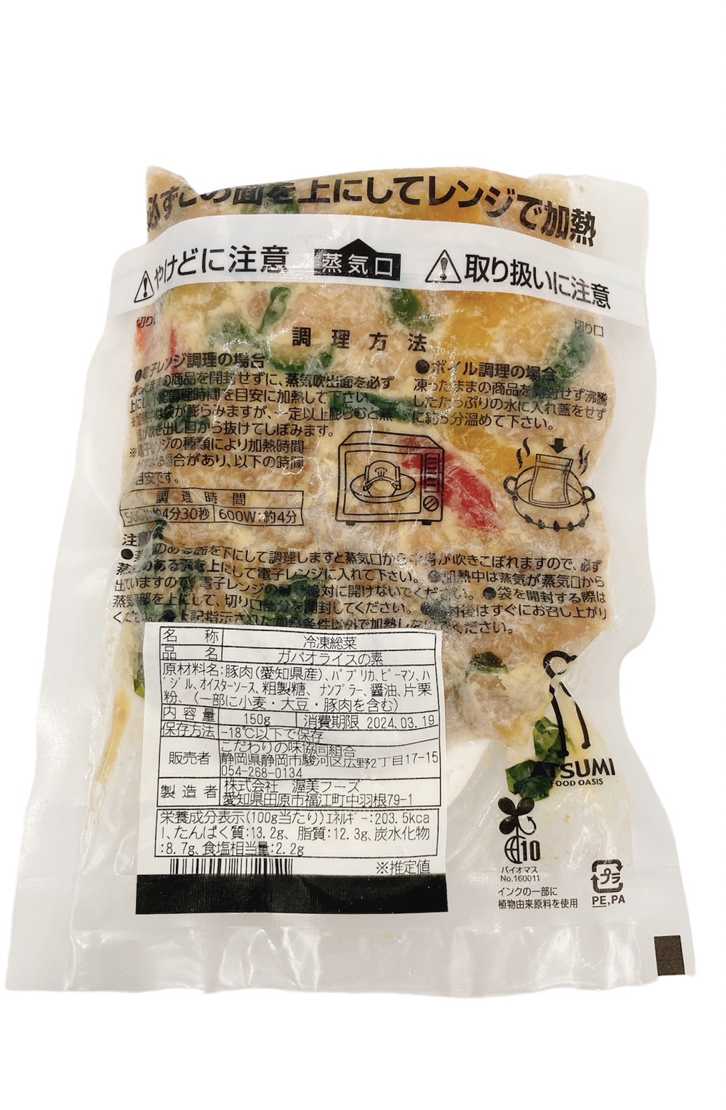 | 原材料 | 豚肉(愛知県産)、パプリカ(国産)、ピーマン(国産)、バジル(愛知県産)、オイスターソース、粗製糖、ナンプラー、醤油、片栗粉(一部に小麦、大豆、豚肉を含む) |