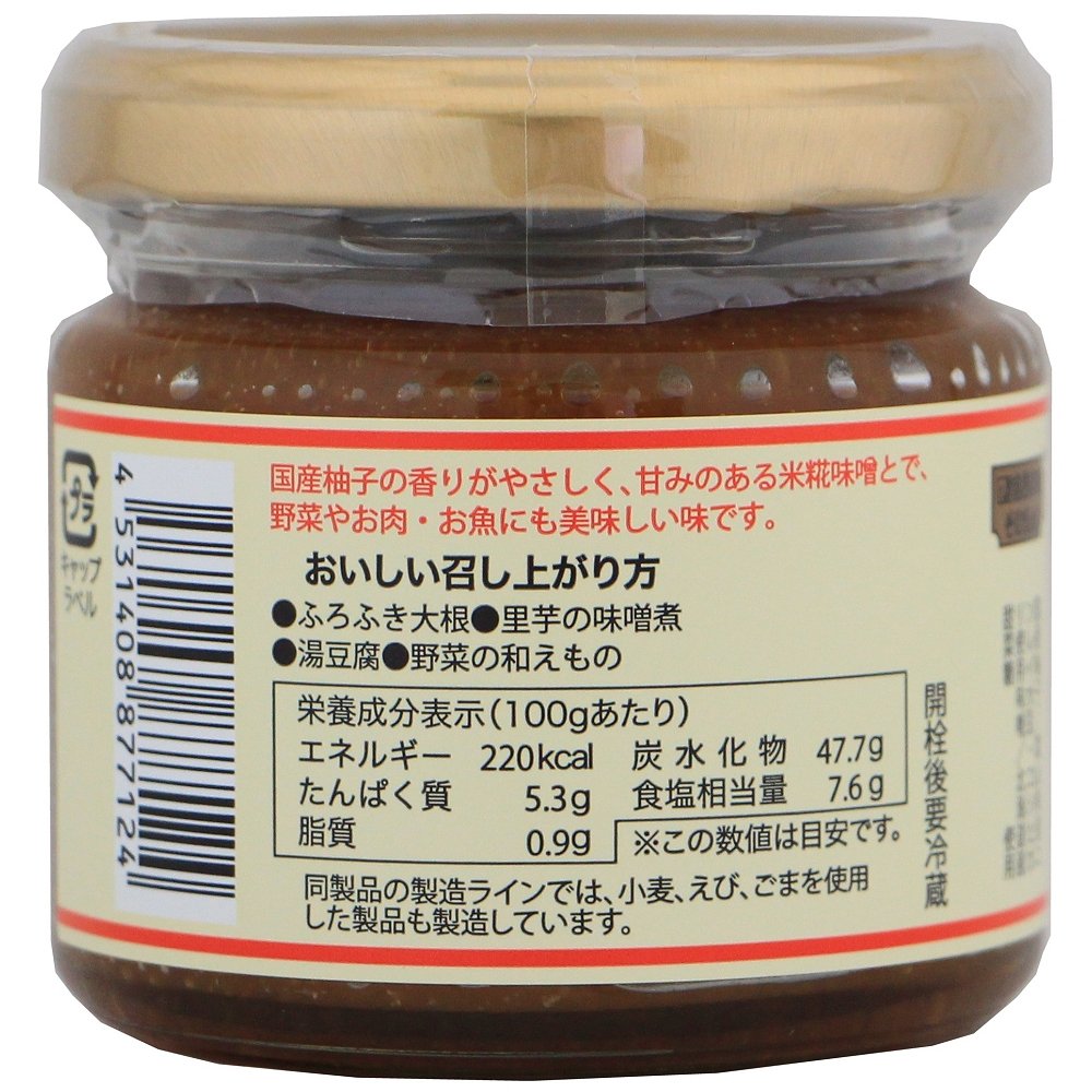 | 原材料 | みそ(大豆を含む)、砂糖(甜菜糖)、ゆず、米発酵調味料 |