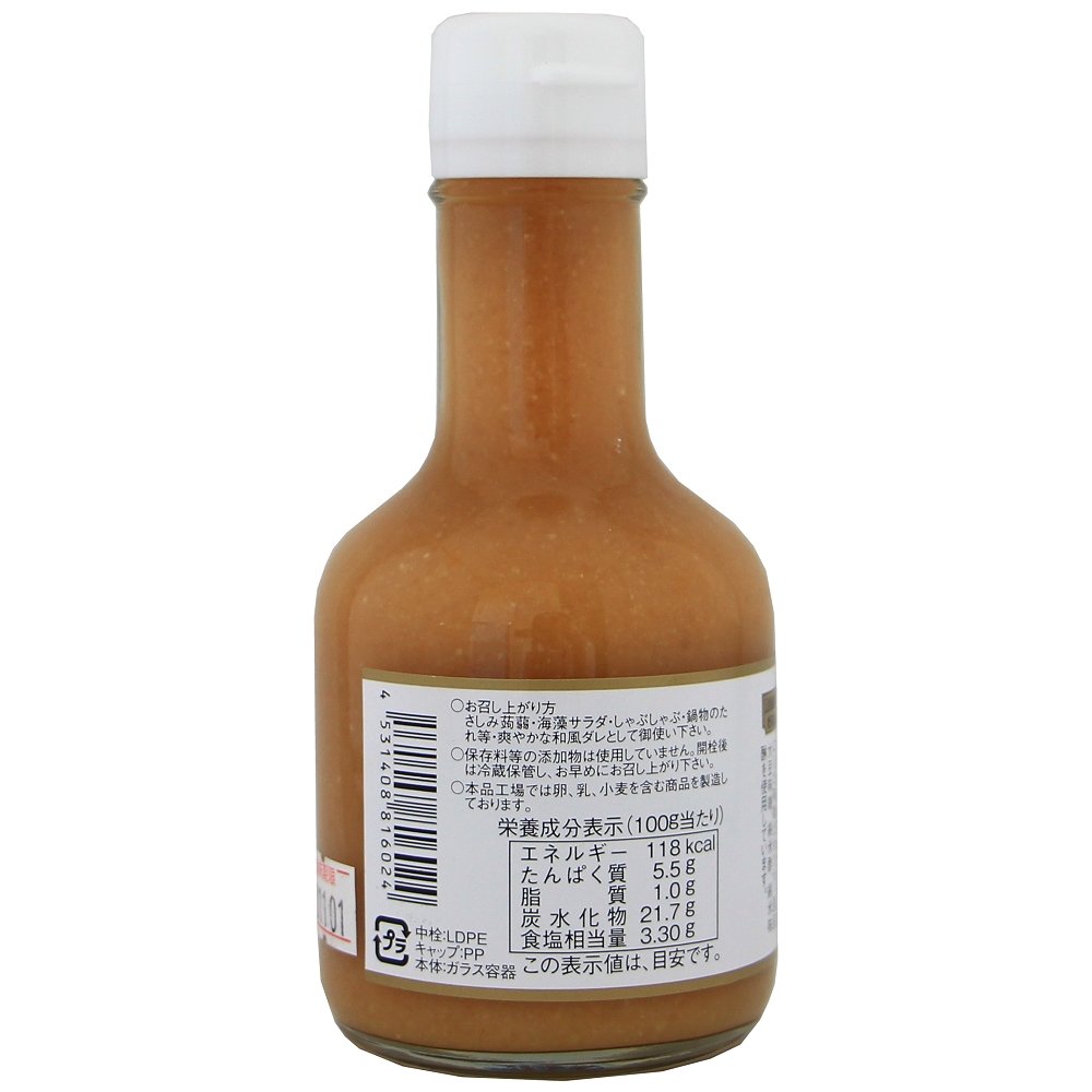お召し上がり方:さしみ蒟蒻・海藻サラダ・しゃぶしゃぶ・鍋物のたれ等・爽やかな和風ダレとして御使い下さい。