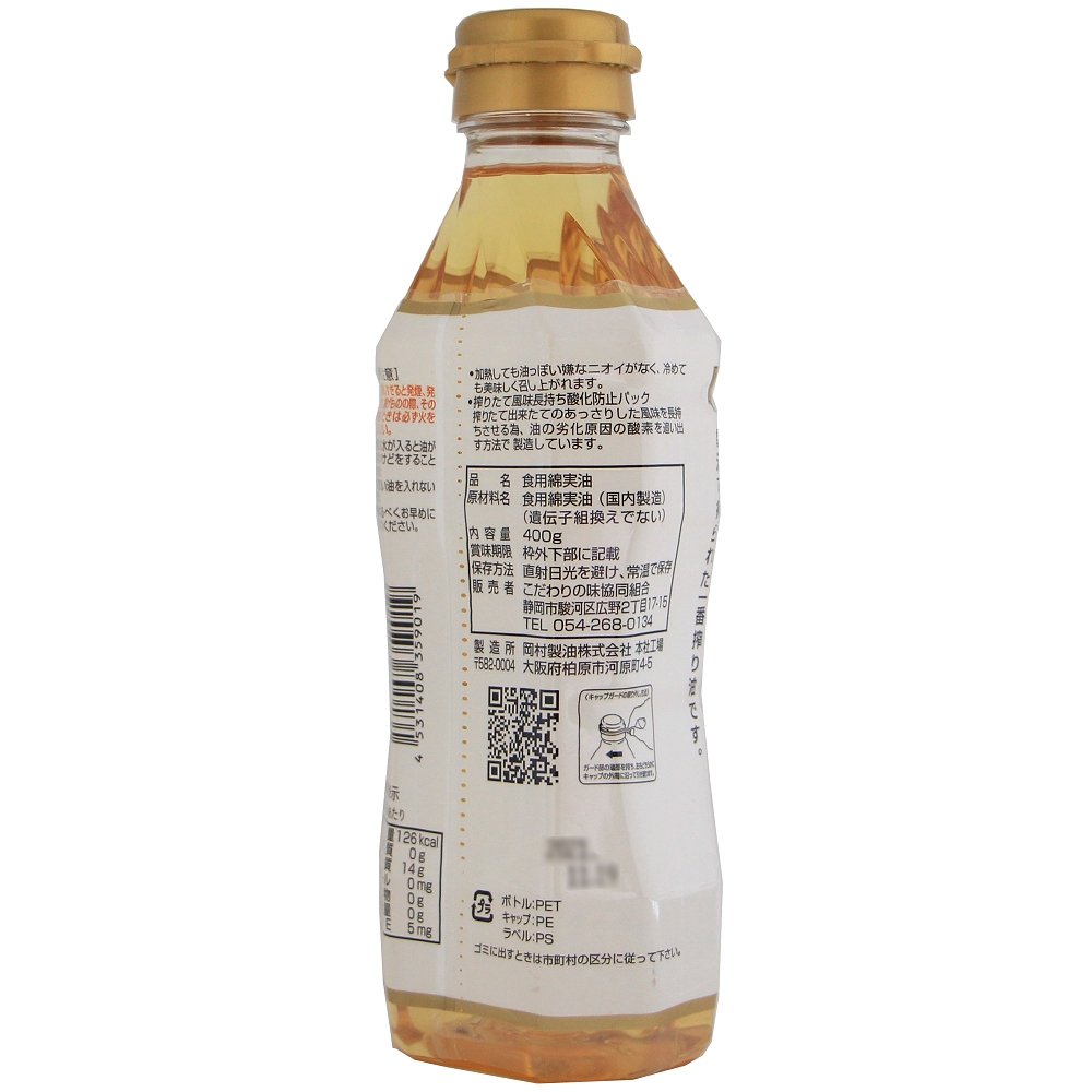 | 原材料 | 食用綿実油(国内製造)(遺伝子組換えでない) |