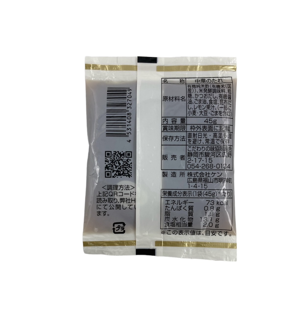 | 原材料 | 有機純米酢(有機米(国産))、米発酵調味料、粗糖、かつおだし、有機醤油、ごま油、食塩、昆布だし、レモン果汁(一部に小麦・大豆・ごまを含む) |