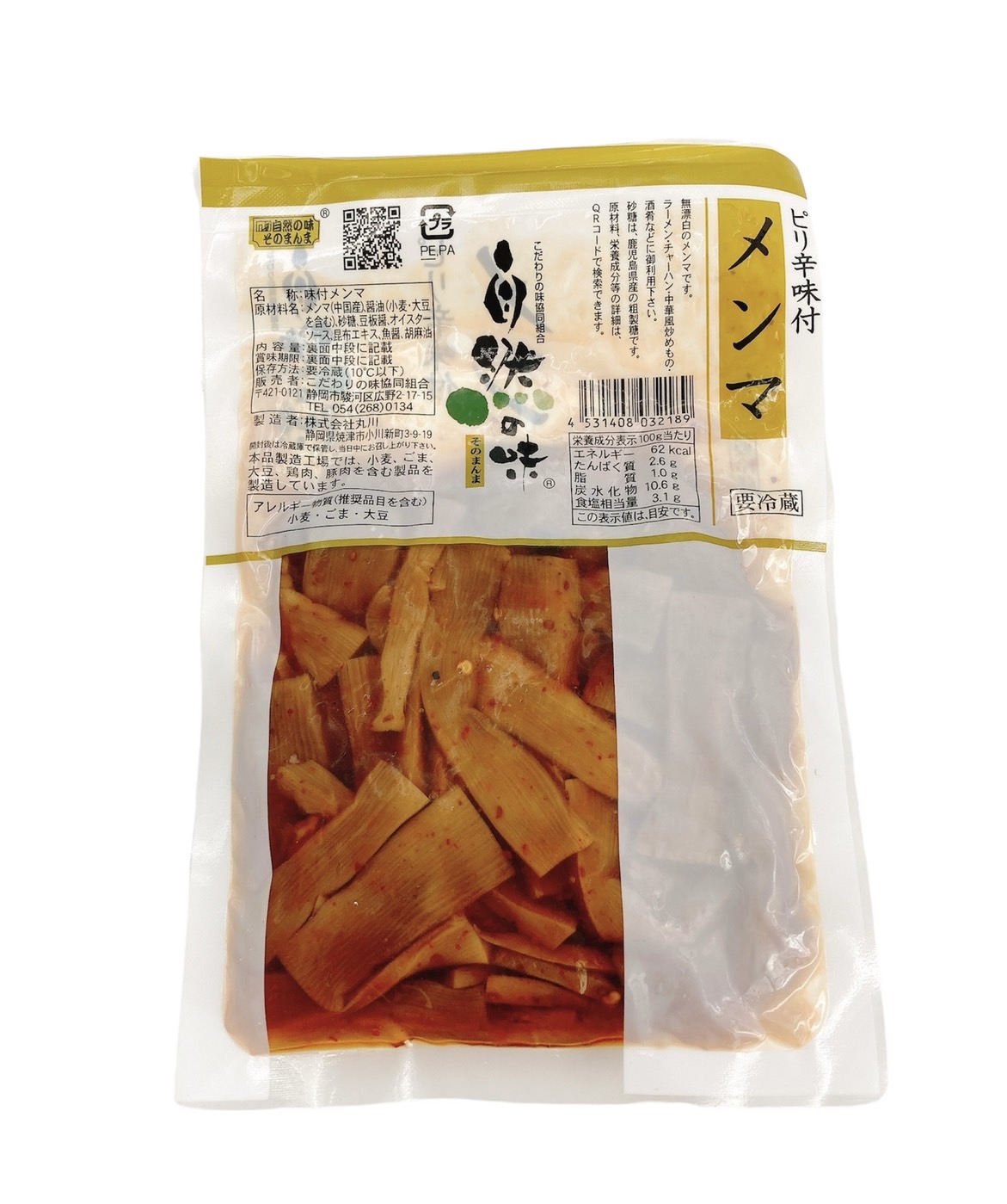 | 原材料 | メンマ(中国産)、醤油(小麦・大豆を含む)、砂糖、豆板醤、オイスターソース、昆布エキス、魚醤、胡麻油 |