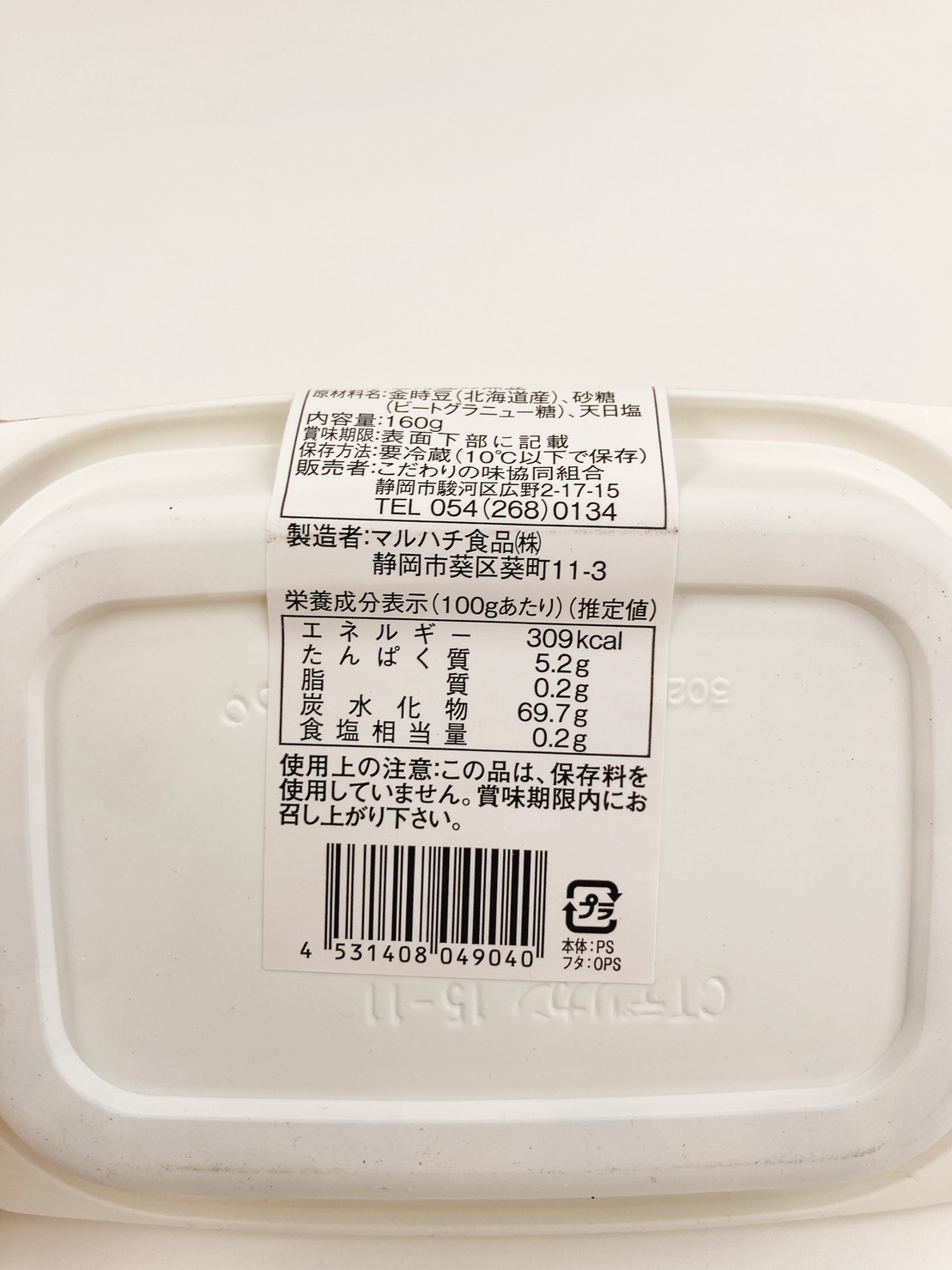 | 原材料 | 大正金時豆、砂糖、粗塩 |