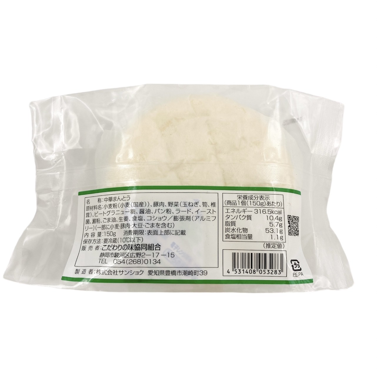 国産の小麦粉の生地で愛知県産の豚肉と国産の野菜(玉ねぎ・筍・しいたけ)を主体にした具材を包んだ中華風豚まんです。