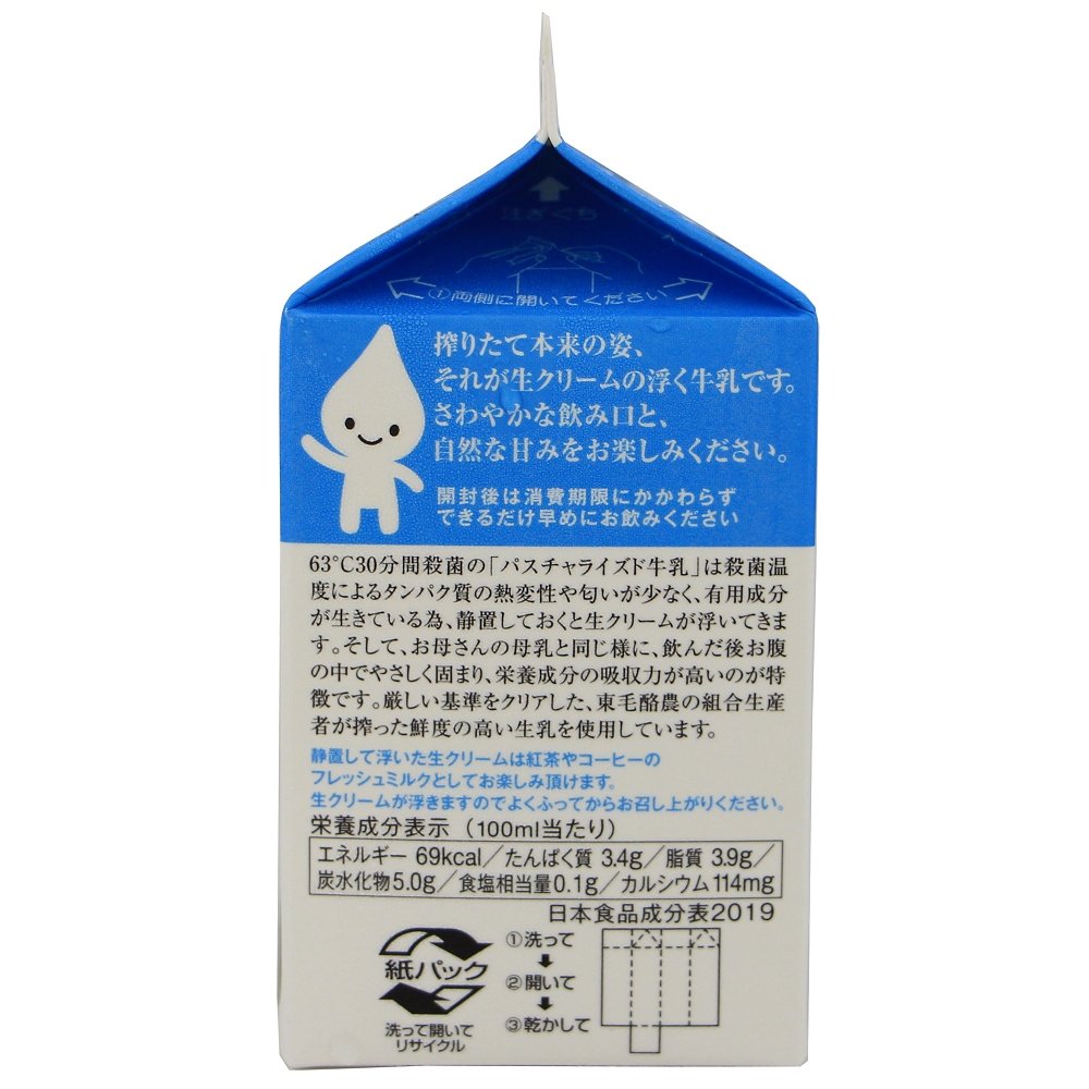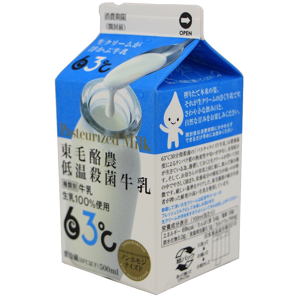 63℃30分の低温殺菌牛乳でホモジナイズ処理をしていません。ですから、脂肪球がそのまま生きています。風味が良くすっきりとした大変おいしい牛乳です。.