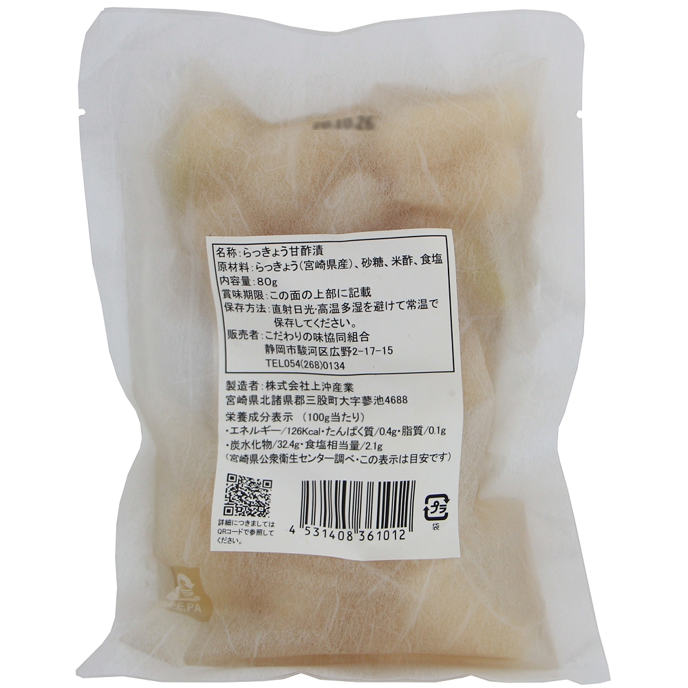 | 原材料 | らっきょう(宮崎県産)、漬け原材料(砂糖、米酢、食塩) |