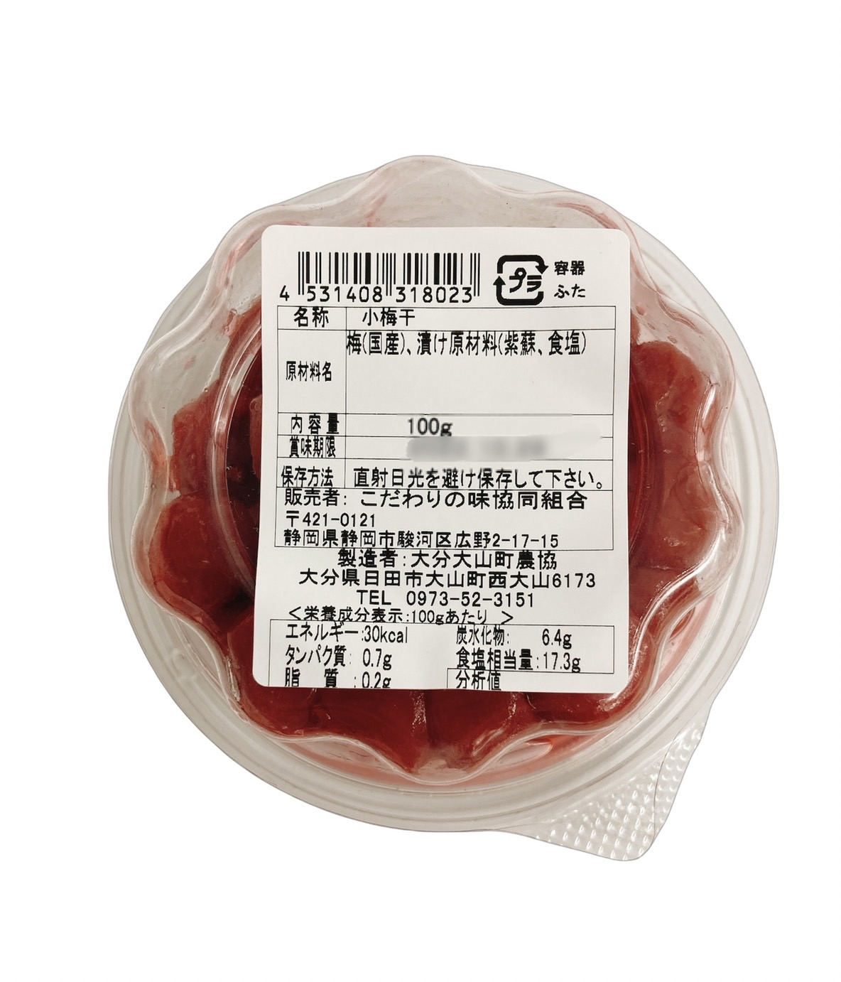 | 原材料 | 梅(国産)、紫蘇、食塩 |