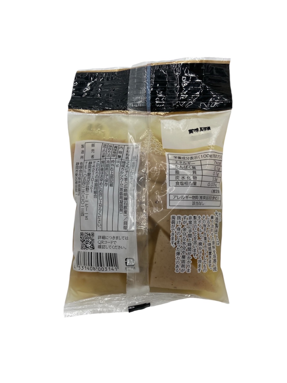 | 原材料 | こんにゃく芋(広島県神石群産)/貝殻焼成カルシウム(蒟蒻用凝固剤) |